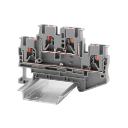Клемма двухуровневая используется для комбинации с двухуровневыми проходными клеммами. Проходной уровень и уровень заземления. Экономия места на DIN-рейке в 2 раза достигается благодаря двухуровневому размещению соединяемых проводников. Зажим push-in, 4 точки подключения. Номинальное сечение 2.5 мм2. Габариты (В×Ш×Г) - 47,6×68,9×5,2 мм. Цвет - серый.