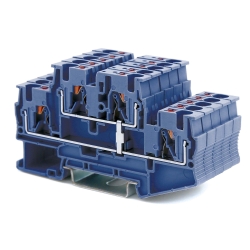 Клемма двухуровневая с Push-in зажимом предназначена для соединения четырех проводников, а за счет кнопки-толкателя обеспечивается защита от ошибок при монтаже и случайного прикосновения. Уровни соединены перемычкой. Монтаж осуществляется на DIN-рейку OMEGA. Температура эксплуатации от -40 до +105°C. Корпус выполнен из ПА 6.6 с классом горючести V0 UL-94.