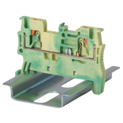 Клемма заземления с Push-in зажимом предназначена для соединения двух проводников, а за счет кнопки-толкателя обеспечивается защита от ошибок при монтаже и случайного прикосновения. Клемма имеет электрический контакт с DIN-рейкой. Монтаж осуществляется на DIN-рейку OMEGA. Температура эксплуатации от -40 до +105°C. Корпус выполнен из ПА 6.6 с классом горючести V0 UL-94.
