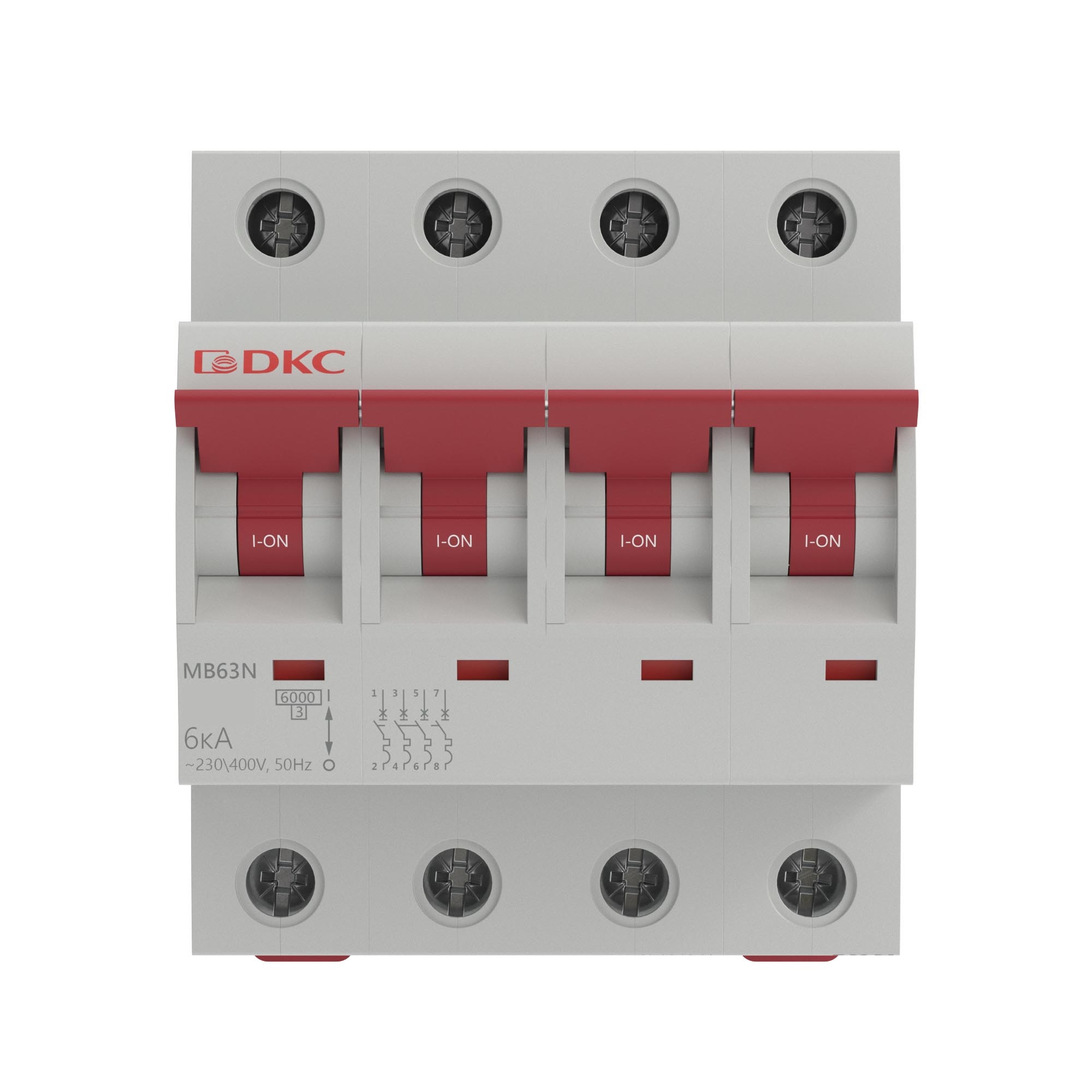 Модульный автоматический выключатель YON MB63, 4P, характеристика D, 6A, 6kA