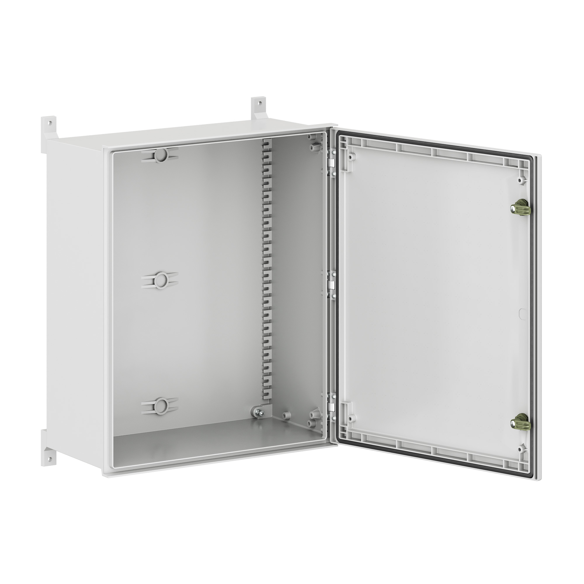 Навесные корпуса "RAM box GRP" предназначены для систем автоматизации и распределения электроэнергии, эксплуатирующихся вне помещений и под открытым небом. Не подвержен коррозии, устойчив к воздействию ультрафиолета, не поддерживает горение и не содержит галогенов, изготавливается из высококачественного полиэстера, армированного стекловолокном GRP, цвет RAL 7035. Литой уплотнитель двери - вспененный полиуретан. Степень защиты IP66, ударопрочность IK10, климатическое исполнение УХЛ1. Комплект поставки: симметричный корпус с глухой дверью, поворотный замок 2 шт., кронштейны для настенного крепления 4 шт. Габариты 600x500x230 (ВхШхГ) мм.