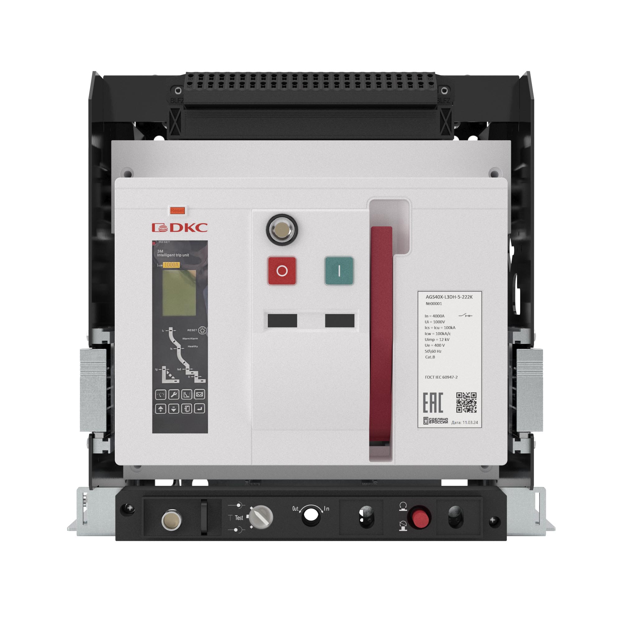 Воздушный автоматический выключатель серии «YON макс» (YON max) AGS предназначен для эксплуатации в сетях низкого напряжения до 415 В. Применяется для рабочих включений и отключений, а также для защит от перегрузок, короткого замыкания и замыкания на землю. Номинальный ток 3200 А, отключающая способность 100 kA, 3-х полюсный, выкатное исполнение, расцепитель 3M, управление 220В AC