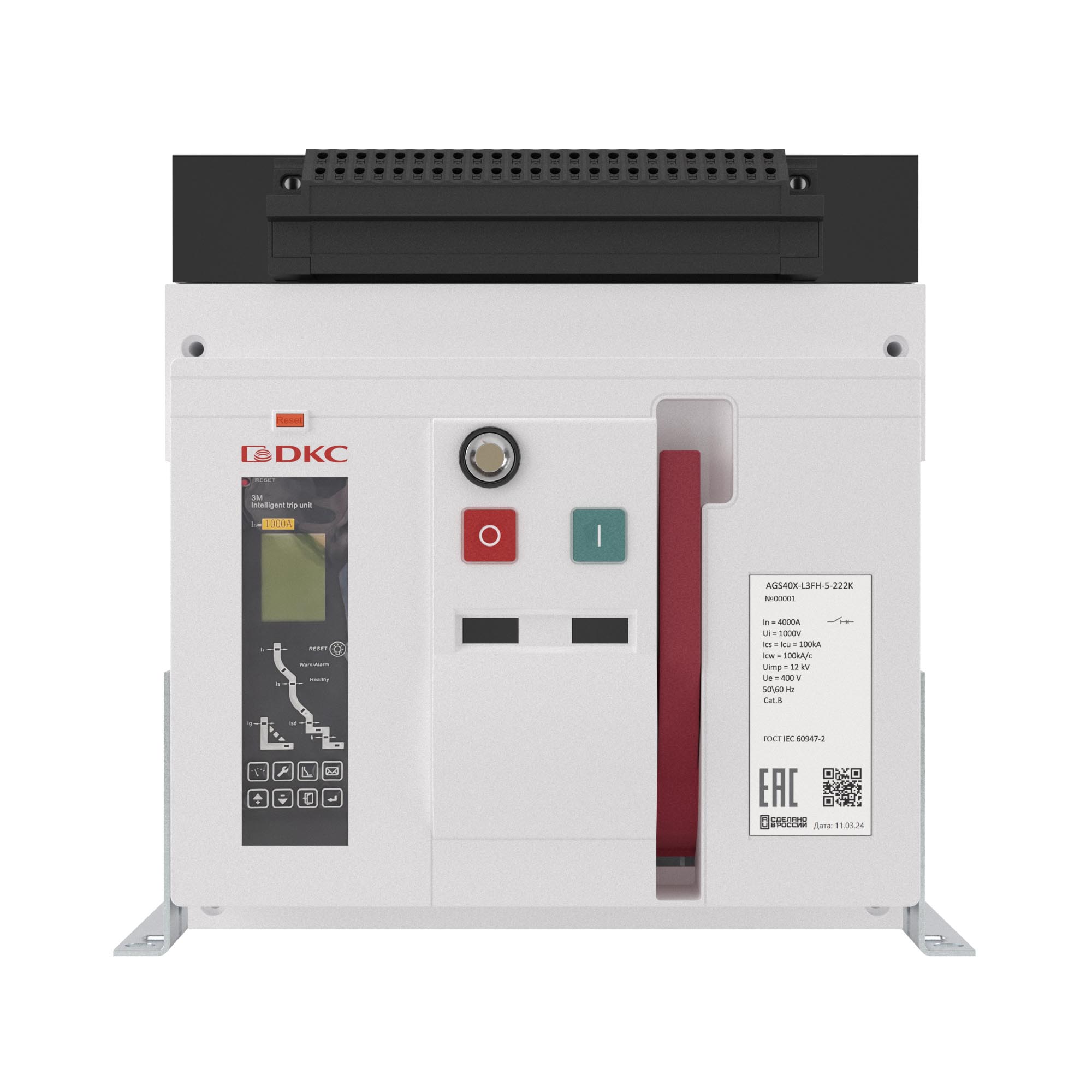 Воздушный автоматический выключатель серии «YON макс» (YON max) AGS предназначен для эксплуатации в сетях низкого напряжения до 415 В. Применяется для рабочих включений и отключений, а также для защит от перегрузок, короткого замыкания и замыкания на землю. Номинальный ток 3200 А, отключающая способность 100 kA, 3-х полюсный, стационарное исполнение, расцепитель 3M, управление 220В AC