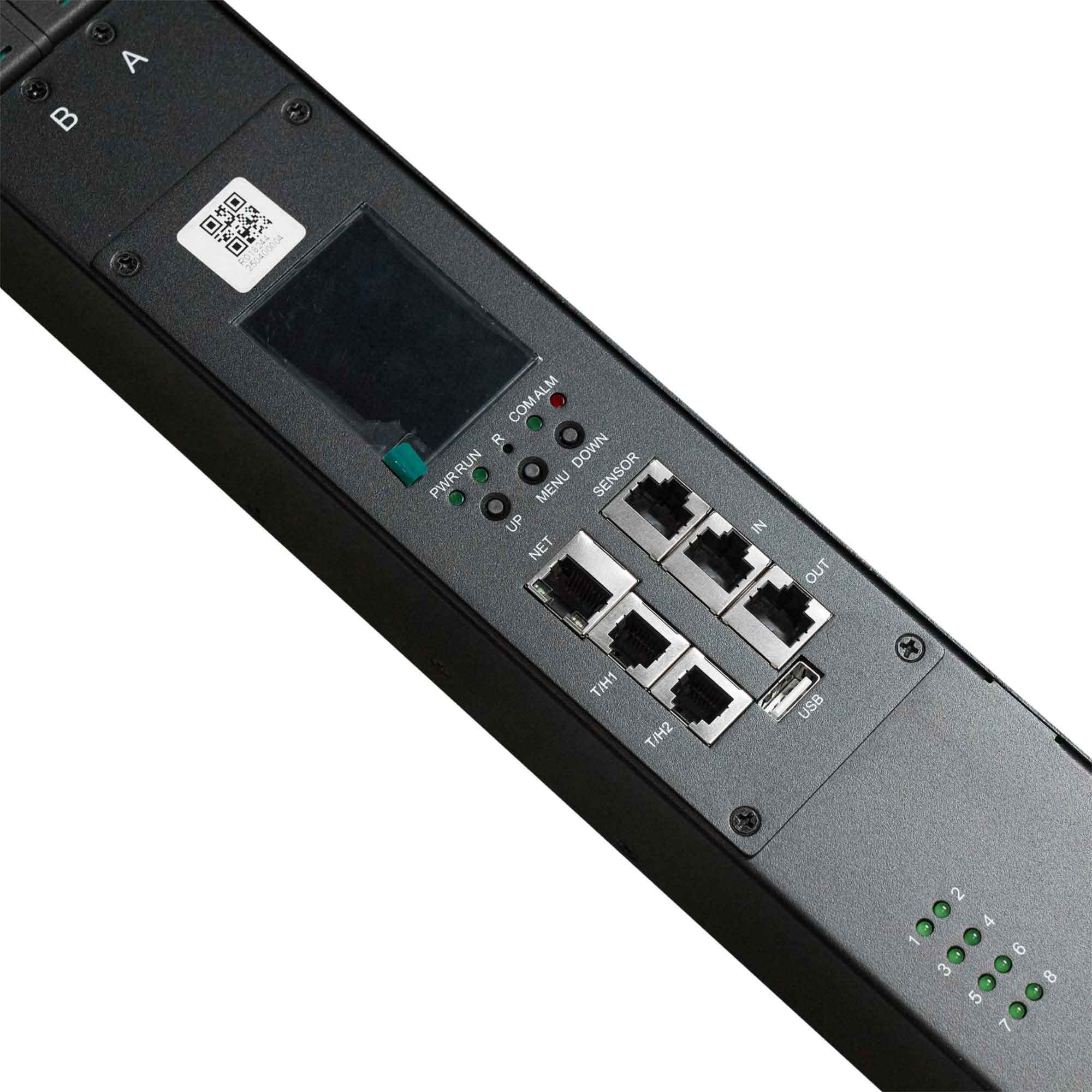 Вертикальный блок распределения питания БРП с мониторингом выходных параметров по розеткам и возможностью управления каждой розеткой. Корпус стальной с внутренней изоляцией, токоведущие шины покрыты защитным лаком. Блок оснащен 24 комбинированными розетками C13/C19. Промышленный разъем IEC 60309 и кабель питания 3 м увеличенного сечения в гермовводе PG гарантируют надежное подключение. Два варианта крепления - безинструментальный монтаж пегтулами или угловыми кронштейнами на торцах (опционально). Каждая группа розеток защищена гидромагнитным автоматом, работающим при температурах до +80°C. Цветная маркировка, светодиодная индикация розеток и надежная система фиксации вилок в розетках обеспечивают удобство эксплуатации. В комплекте: базовый набор для монтажа (М6), пегтулы (2 шт.).