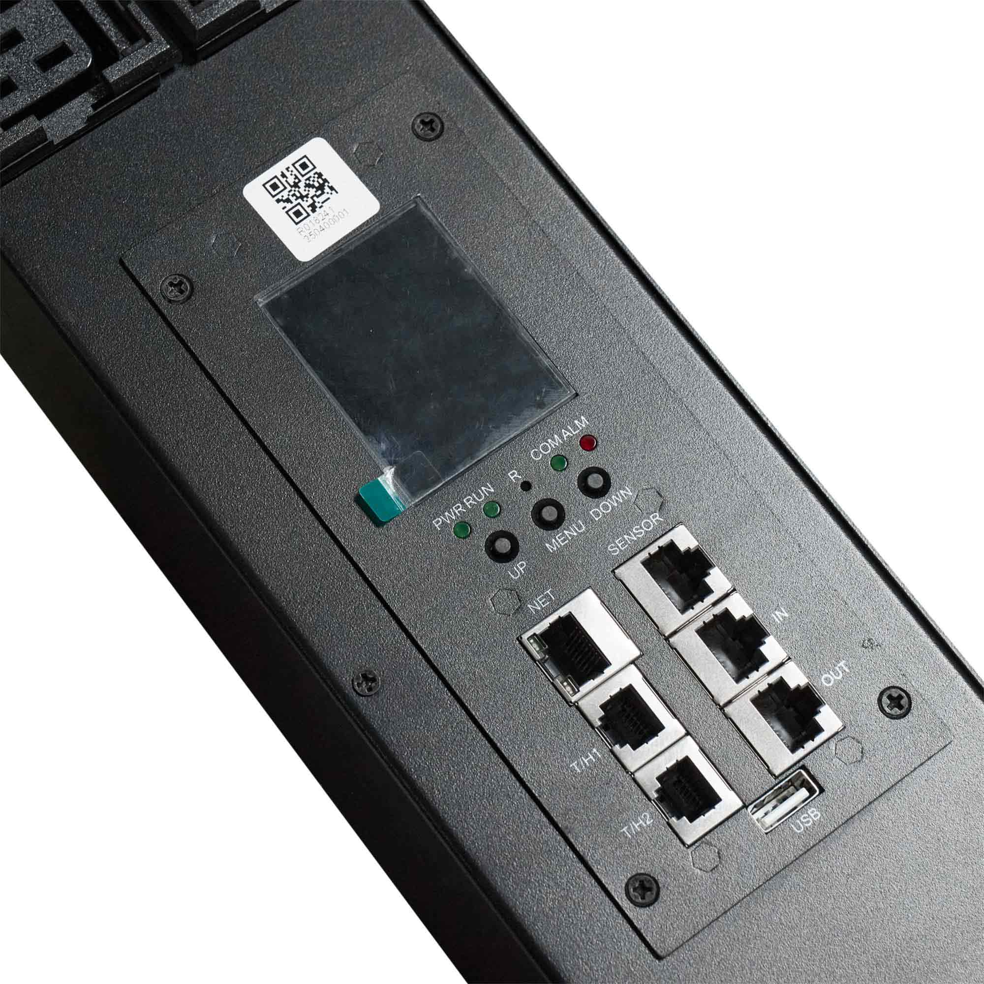 Блок распределения питания вертикальный 0U 32A с измерением температуры и влажности воздуха, индикацией и мониторингом по каждому банку 16А, трехфазный Вых:36ХС13/С19 Вх:IEC309Х3м