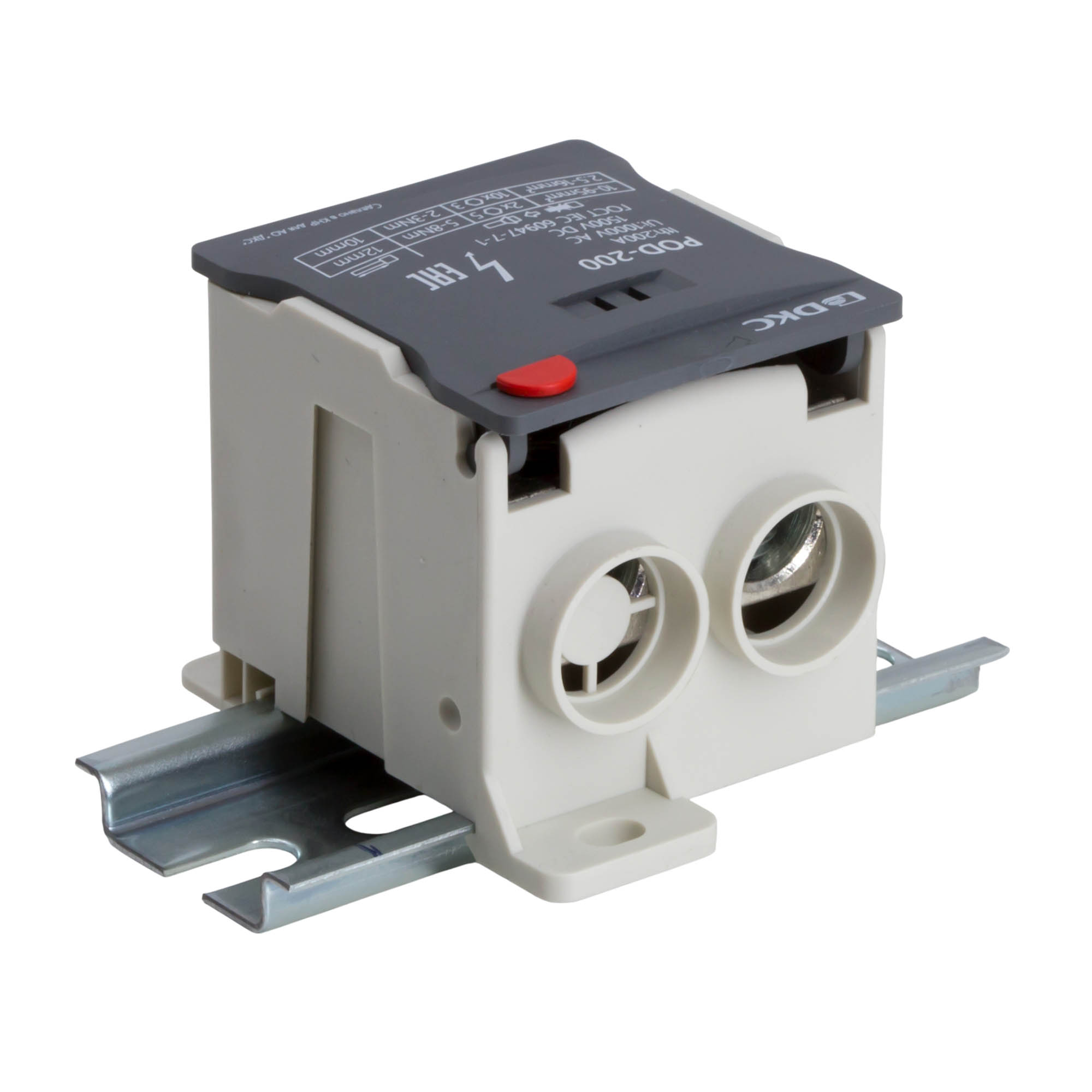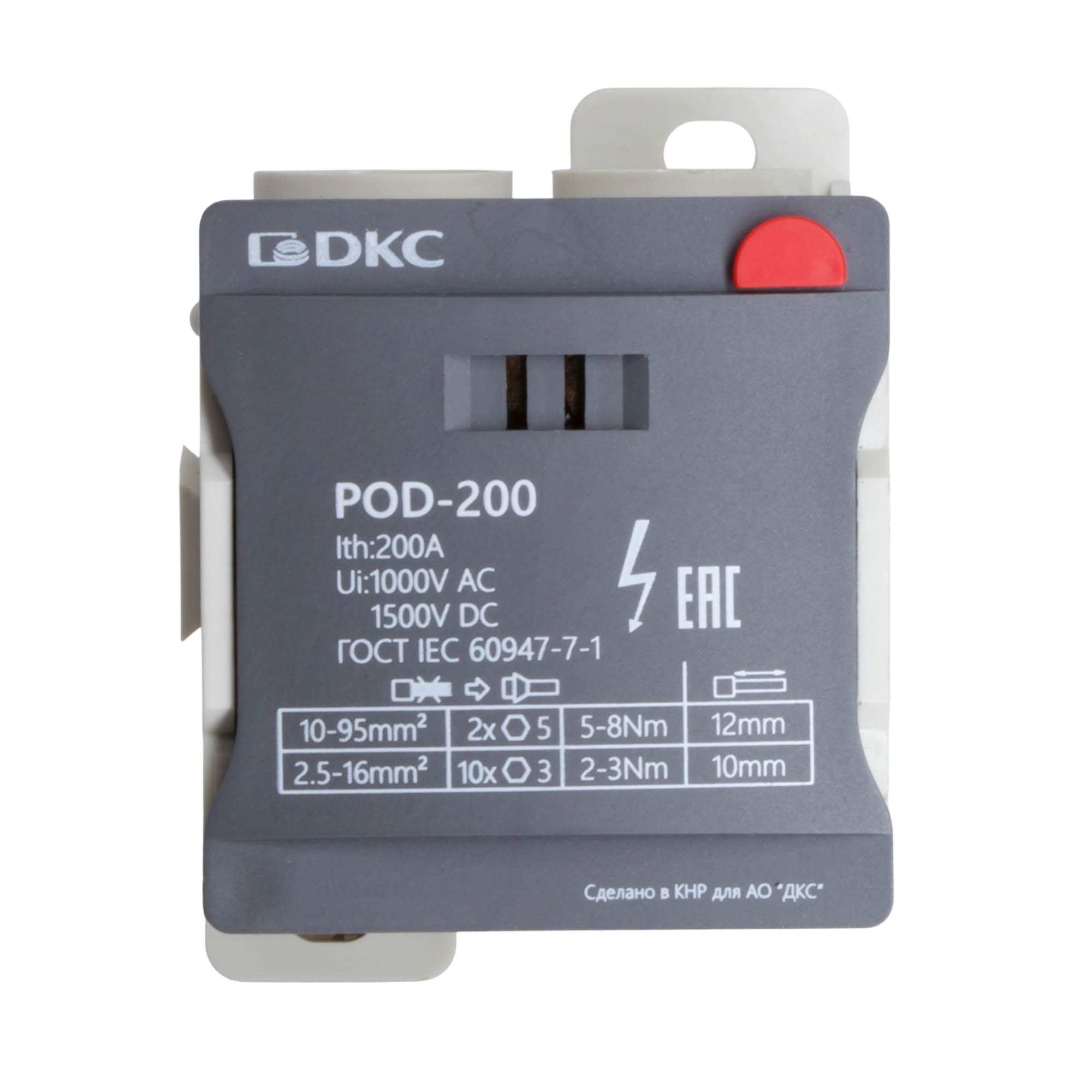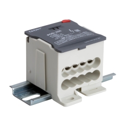 Распределительный блок POD-200 с винтовым зажимом служит для соединения и распределения многожильных или обжатых наконечником гибких проводников в электрических щитах. Установка на DIN-рейку высотой 35 мм или монтажную плату. Боковой штифт обеспечивает стыковку блоков между собой. На крышке распределительного блока нанесена ключевая информация, а также есть паз для маркировки NUTB5. В комплект входит цветная пластиковая маркировка (синий, зеленый, красный, желтый) и самоклеящаяся (L1, L2, L3, N, заземление, круг). Корпус выполнен из полиамида с классом горючести V0 UL-94. Степень защиты – IP20. Цвет – серый, 2 ввода с сечением 10-95 мм2, 10 точек подключения (выводов) с номинальным сечением проводников 2,5-16 мм2. Габариты (В×Ш×Г) – 50×50,5×67,5 мм.