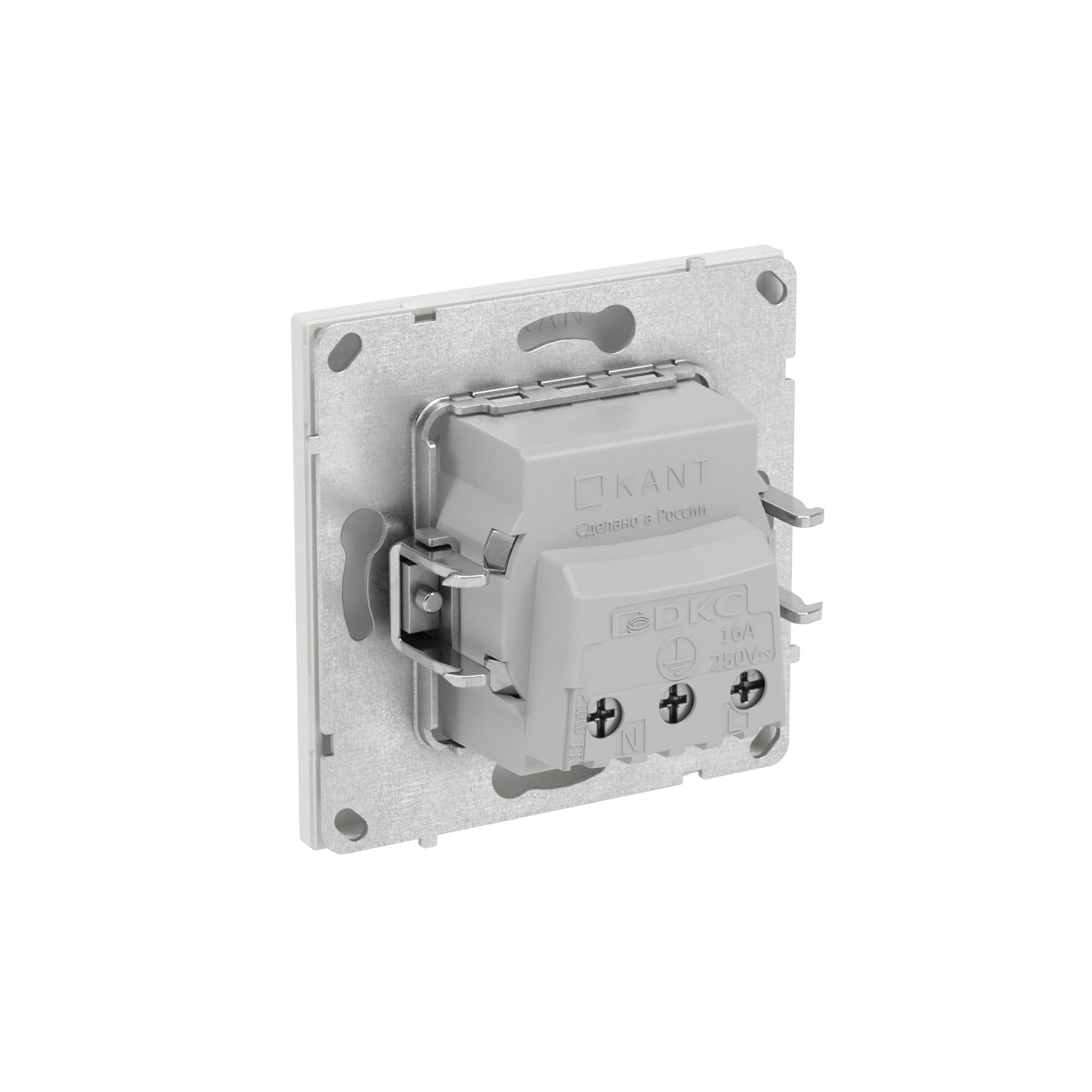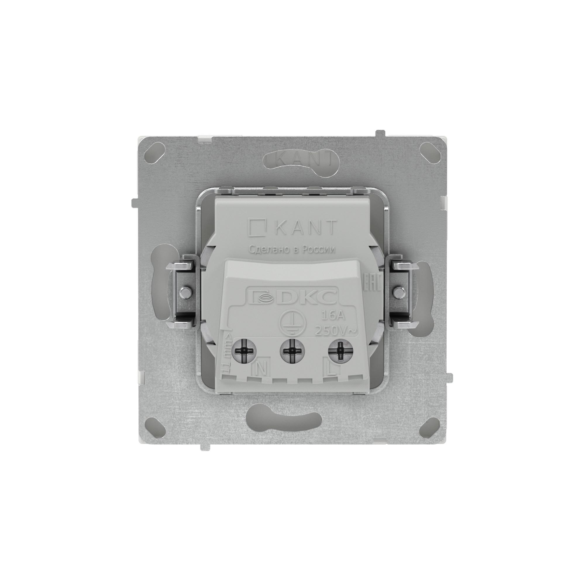 Розетка 2P+E (однофазная розетка с заземлением) без шторок применяется для подключения бытовых электроприборов. Предназначена для скрытого монтажа в стену. Характеристики устройства: номинальное напряжение 250 В, номинальный ток 16 А. Материал: металл, поликарбонат. Пластиковые элементы устройства имеют цвет "Белый песок". Для декоративного оформления электроустановочных изделий используются рамки серии "KANT".