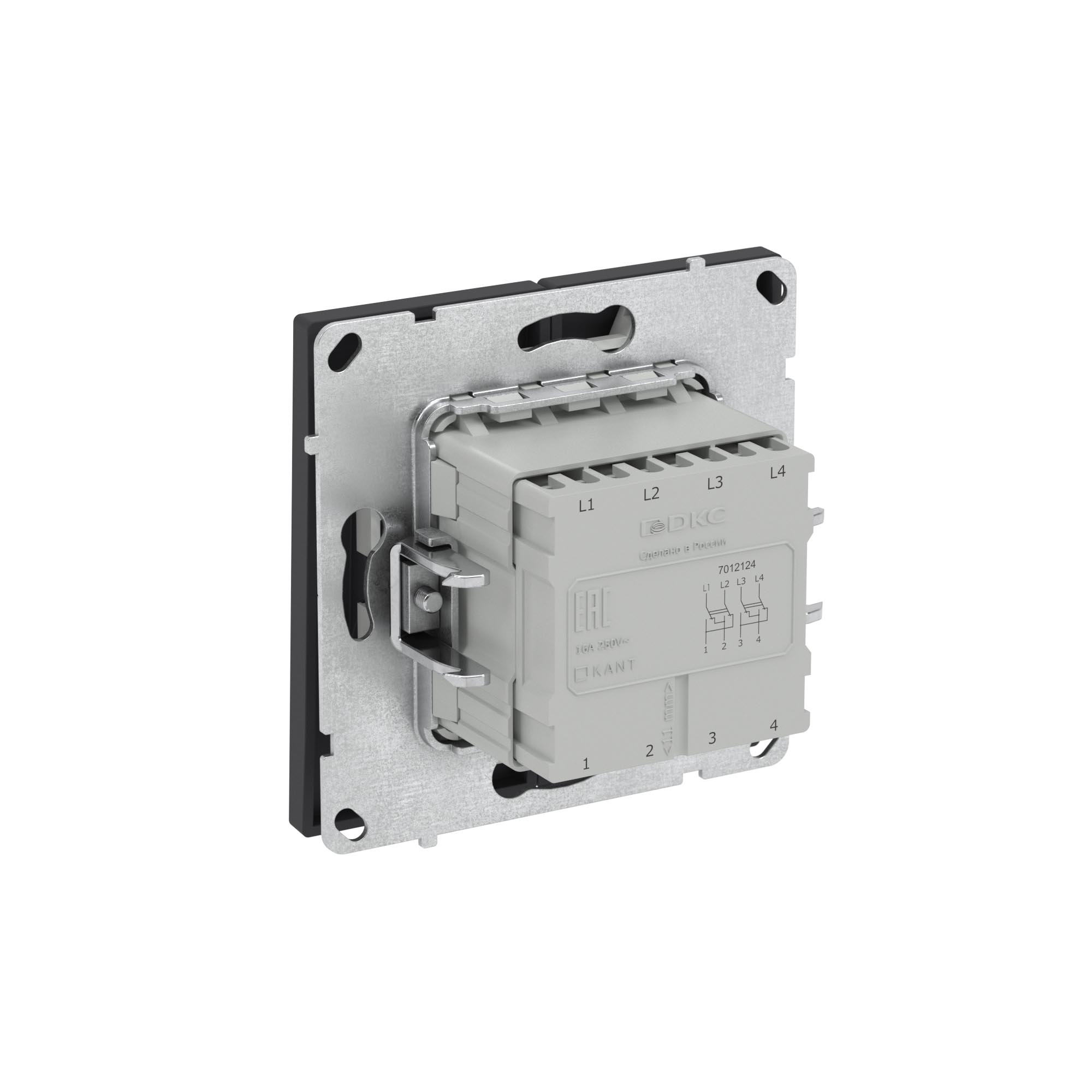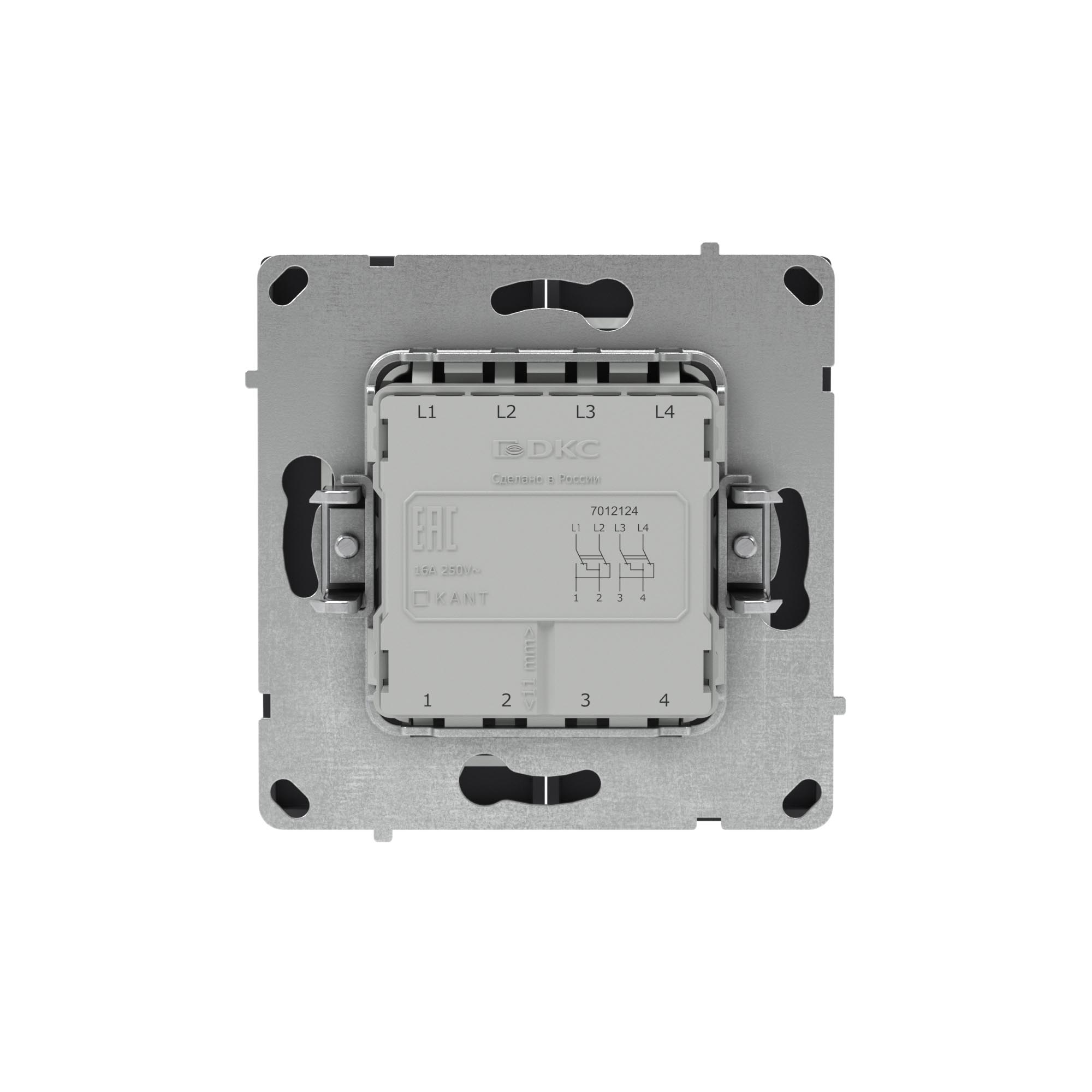 Двухклавишный инвертор применяется для управления двумя контурами освещения из 3 мест. Предназначен для скрытого монтажа в стену. Характеристики устройства: номинальное напряжение 250 В, номинальный ток 16 А. Материал: металл, поликарбонат. Пластиковые элементы имеют цвет "Черный уголь". Для декоративного оформления электроустановочных изделий используются рамки серии "KANT".