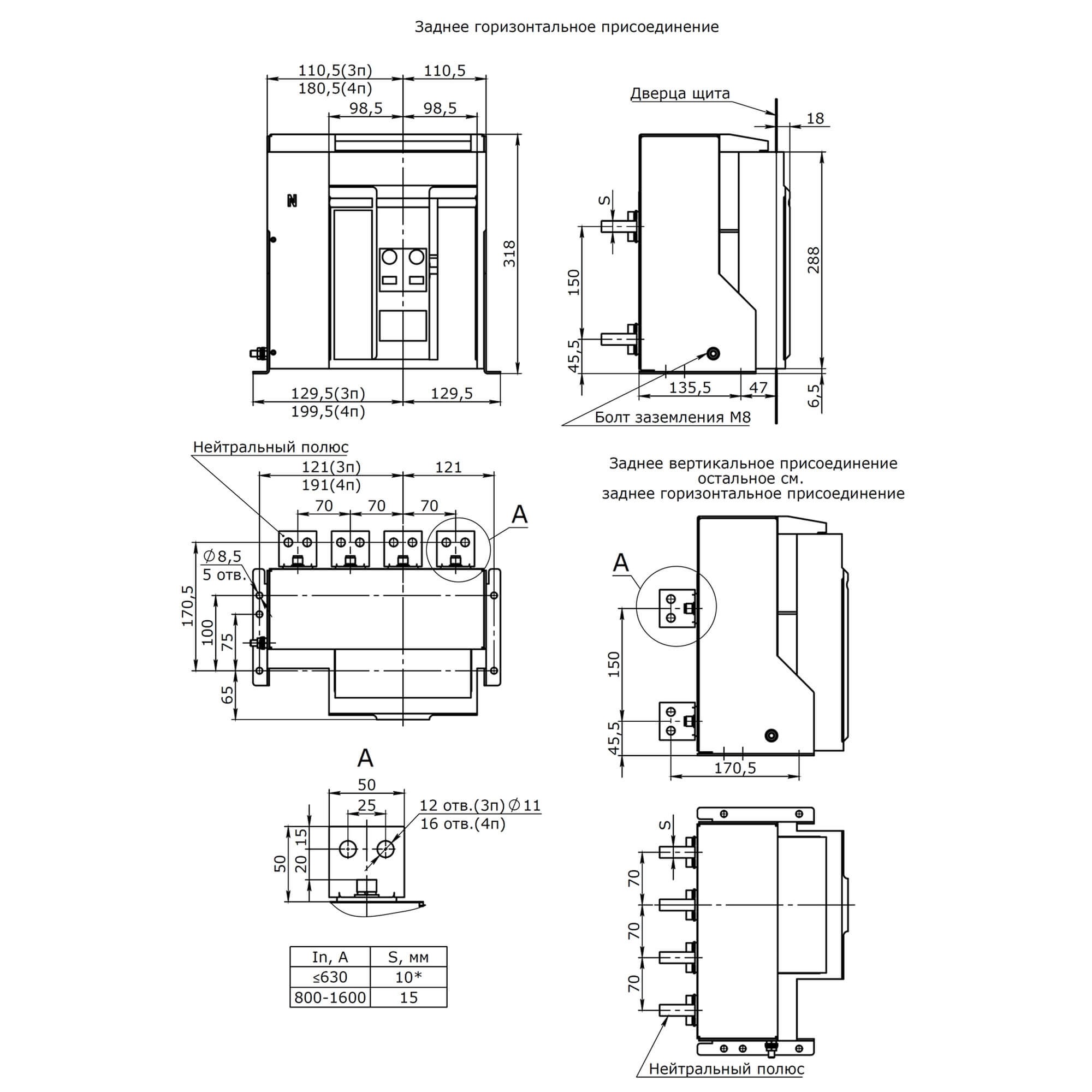 | Вид подключения главной электрич. цепи | Подключение сзади |