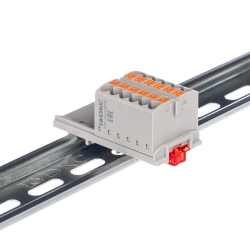 Распределительный блок с push-in зажимом и вертикальным адаптером предназначен для быстрого и надежного распределения потенциала между несколькими цепями. Устанавливается на DIN-рейку шириной 15 или 35 мм. Оснащен 12 точками подключения с номинальным сечением 2,5 мм², что обеспечивает гибкость при монтаже. Корпус изготовлен из прочного полиамида 6.6 с классом горючести V0 по UL-94, обеспечивая безопасность и долговечность эксплуатации. Габариты (В×Ш×Г) — 21,7×31,6×28,8 мм, цвет — серый.