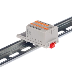 Распределительный блок с push-in зажимом и вертикальным адаптером предназначен для удобного и безопасного распределения потенциала между несколькими цепями. Имеет один ввод для проводников сечением 6 мм² и десять точек подключения по 2,5 мм². Монтаж выполняется без инструмента, установка возможна на DIN-рейку шириной 15 или 35 мм. Корпус изготовлен из полиамида 6.6 с классом горючести V0 по UL-94, обеспечивающего надежность и термостойкость. Габариты (В×Ш×Г) — 21,7×36,1×28,8 мм, цвет — серый.