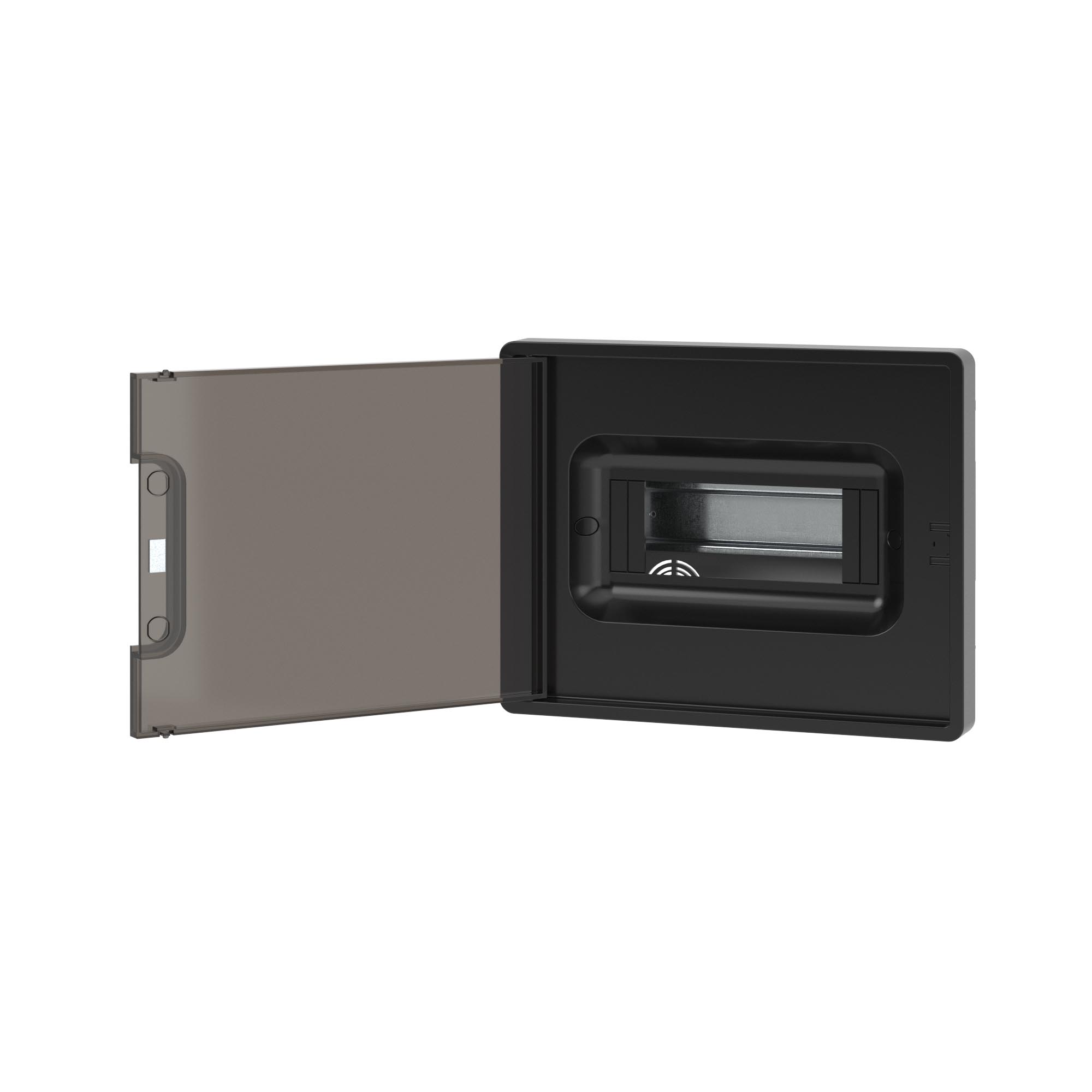 Щиток 8 мод встраиваемый для полых стен Фрейм (FRAME), черный, с тонированной дверцей, с 2 шинами PEN на 6 и 8 отв.