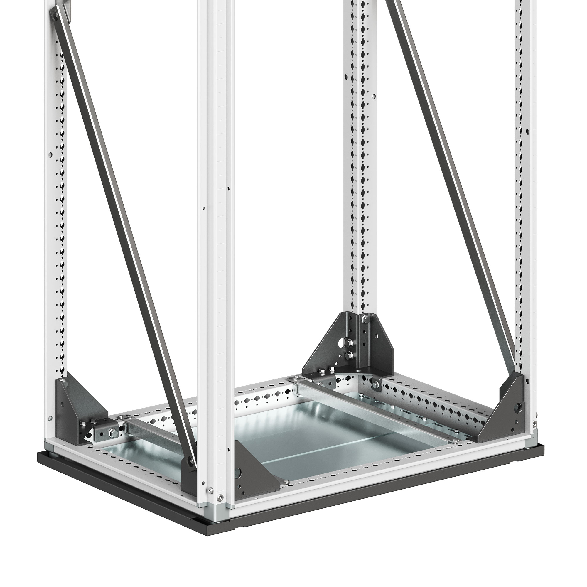 Комплект усилителей сейсмостойкий предназначен для совместного применения с сейсмоцоколем для установки напольных корпусов серии CQE N в сейсмоопасных зонах, включая объекты АЭС и ГЭС. Материал элементов – сталь толщиной 4 мм. Одновременное использование сейсмокомплекта и сейсмоцоколя обеспечивает усиление каркаса корпуса, соответствие вибропрочности по группе механического исполнения М40 и сейсмостойкость до 9 баллов по шкале MSK-64 на высоте установки до 70 м. Оцинкованные втулки комплекта обеспечивают жёсткое соединение нижних сейсмоуглов шкафа с сейсмоцоколем, существенно повышая общую жёсткость конструкции. Комплектующие совместимы исключительно с корпусами серии CQE N. Габариты ВхГ: 1800х500 мм