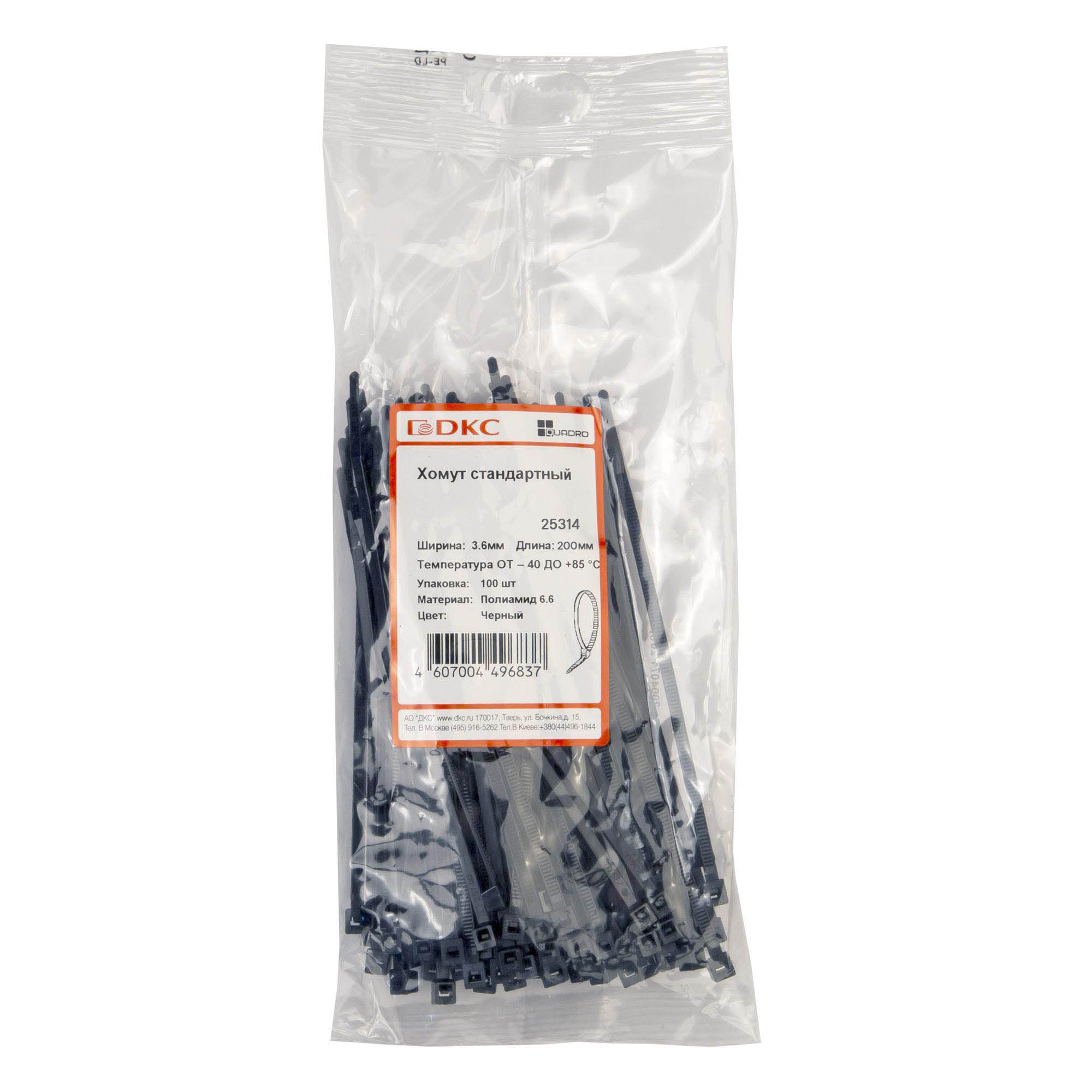 Хомуты (или, иначе, стяжки) – это популярный крепежный элемент, применяющийся при монтажных или строительных работах. Хомуты ДКС прочны, устойчивы к коррозии и воздействию агрессивных сред, что позволяет использовать их не только внутри помещений, но и на улице. С помощью гибких хомутов можно создавать как жесткие, так и подвижные соединения. Ребристые внутренняя и внешняя стороны обеспечивают надежную фиксацию и предотвращает соскальзывание хомута. Изделие имеет длину 200 мм, ширину 3,6 мм, устойчивость к растяжению 180 H. Не рекомендуется использовать стяжки в зонах, где они будут подвергаться воздействию прямых солнечных лучей.