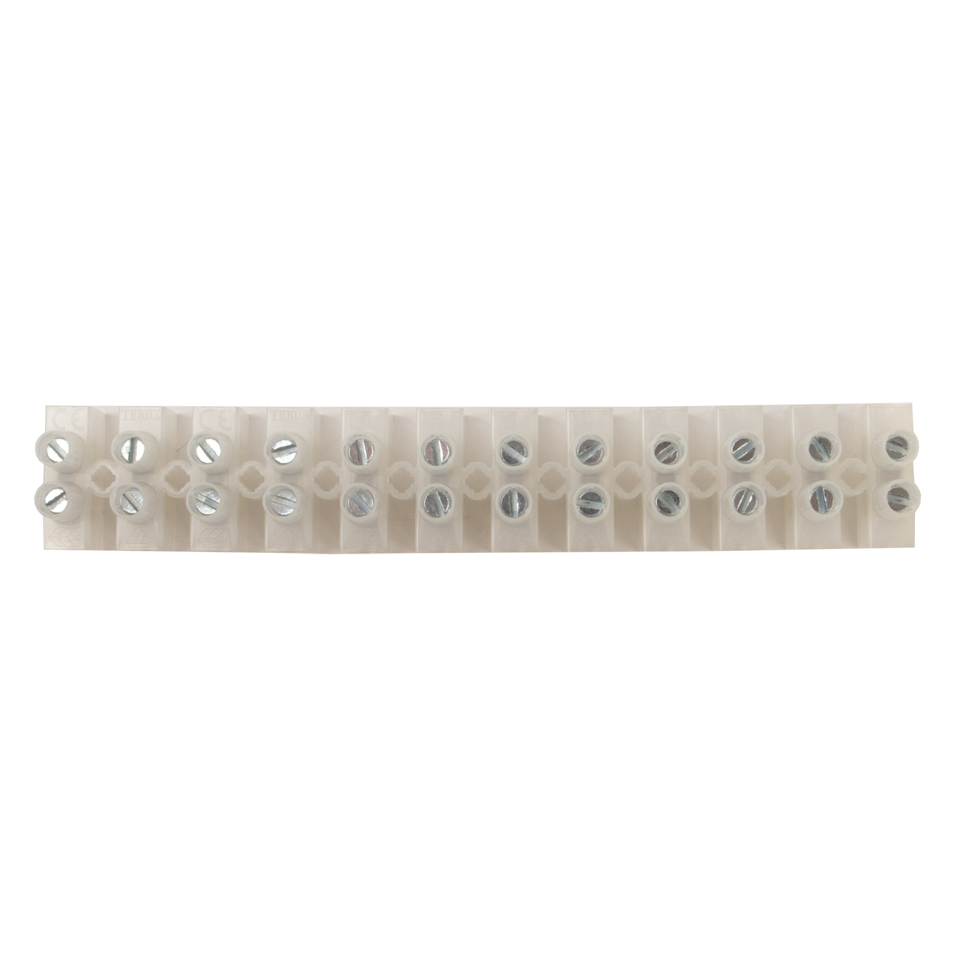 Винтовые клеммные колодки представляют собой надежное решение для соединения проводов в электрических цепях. Эти клеммные зажимы состоят из токопроводящей части, заключенной в прочный диэлектрический корпус из полиамида 6.6, который отличается повышенной стойкостью к внешним воздействиям, негорючестью и термостойкостью в диапазоне от -20°С до +110°С. Материал контактов – бронза (OT58) с никелевым покрытием (Ni). Классические винтовые клеммы обеспечивают прочное и долговечное соединение проводников, значительно упрощают монтажные работы и предотвращают перегрев в местах контактов. Номинальные параметры колодок составляют: напряжение до 450 В, ток до 32 А, максимальное сечение подключаемого провода - 4 мм². Конструкция предусматривает 12 полюса.
