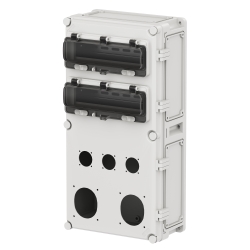 Серия корпусов предназначена для удобного и быстрого построения розеточных постов, облегчающих подключение и управление мобильным оборудованием. Корпус ориентирован на установку панельных розеток номиналом 16 А и 32 А. Корпус расчитан на 24 модуля и предназначен для монтажа 2 розеток модели PAS стандарта CEE и 3 розеток стандарта Schuko. Степень защиты IP44.