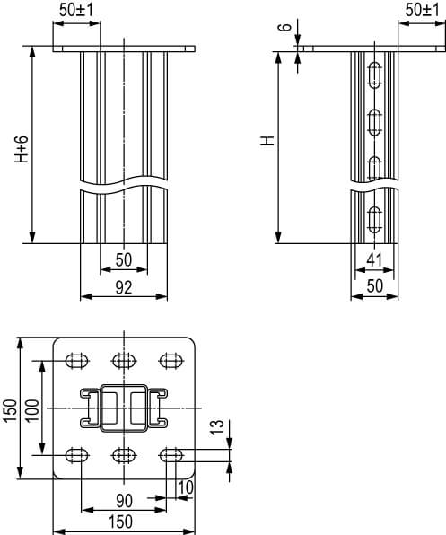 Двойной вертикальный подвес усиленной конструкции BSD-92, применяется для монтажа консолей: ВВН-60, ВВН-70, ВВН-80, BBD-21, BBP-21/41; нахначение: одно/двусторонний и параллельный монтаж кабельных трасс; для монтажа подвесных конструкций. Подвес монтируется к полу или потолку. Параметры С-образного двойного профиля подвеса 41х21 мм, толщина профиля 2,5 мм, толщина пластины 6 мм, толщина трубы 2 мм, в основании 6 отверстий под метизы М12. Длина подвеса - 800 мм. Противокоррозионное цинкнаполненное покрытие повышает срок службы изделия в условиях агрессивных сред и высокой влажности.