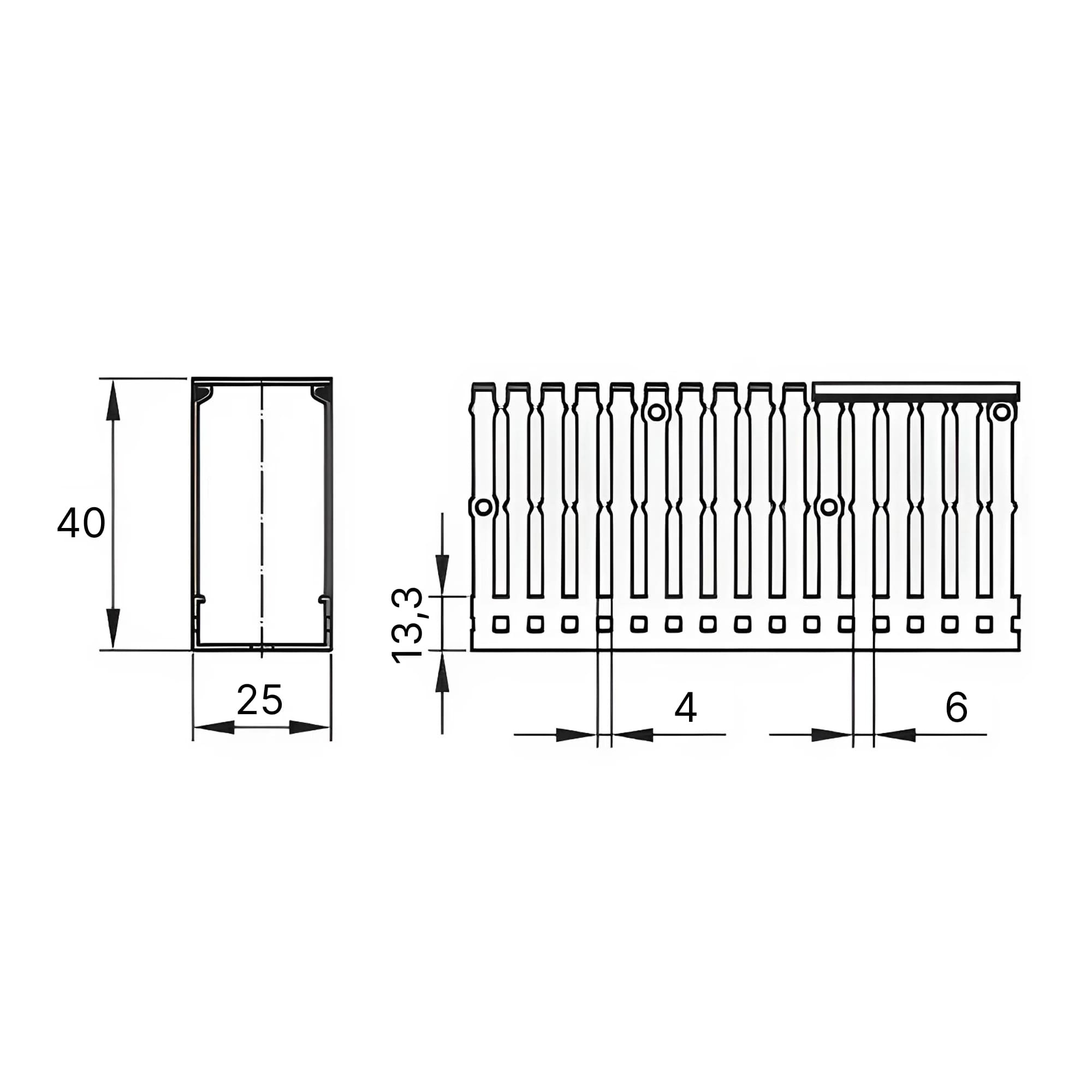 Перфорированный короб серии RL6 25x40 мм — это незаменимое решение грамотной организации и безопасной прокладки кабельно-проводниковой продукции внутри электрических шкафов автоматизации и распределения. Его конструкция обеспечивает упорядоченную и безопасную прокладку проводов.