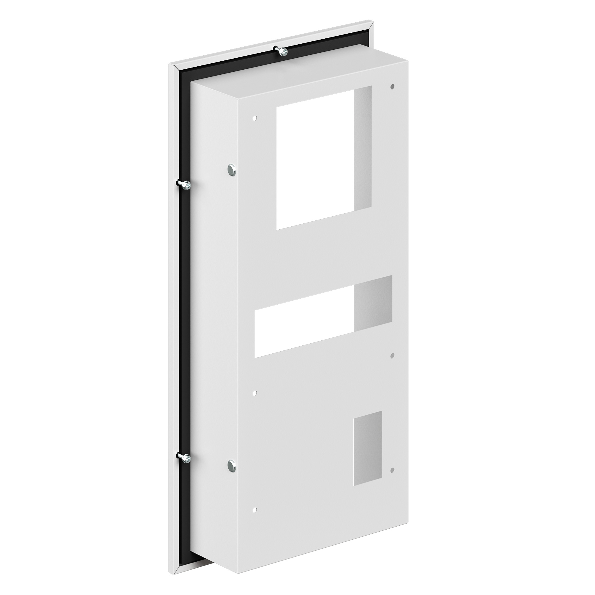 Применение данной рамы способствует уменьшению общих габаритов электротехнического шкафа с кондиционером при условии, что внутри шкафа есть необходимое пространство для монтажа. В ассортименте представлено 7 моделей полуутопленных рам под каждый тип навесного кондиционера. Данная модель применяется для навесного кондиционера 500-800 Вт 230 В.