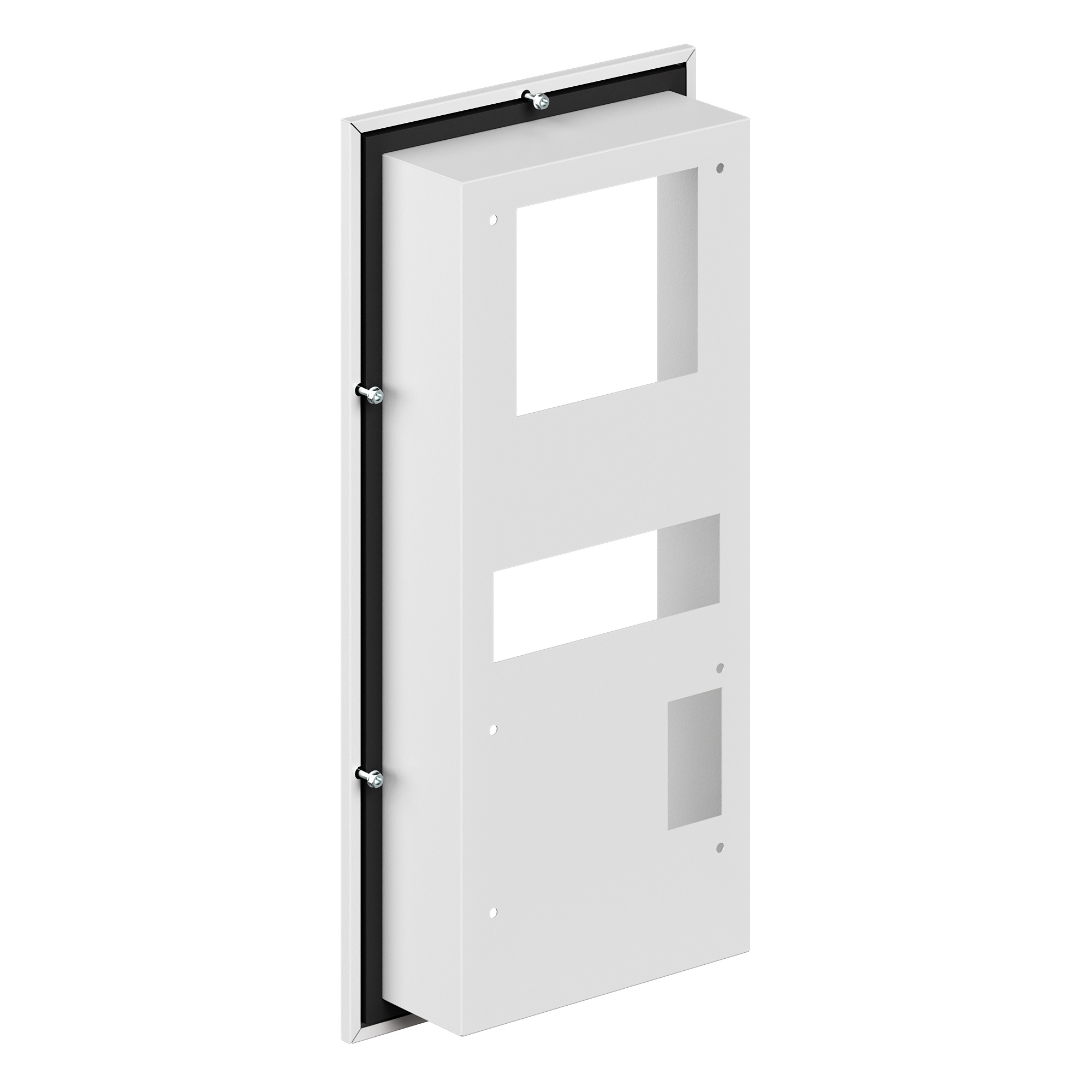 Применение данной рамы способствует уменьшению общих габаритов электротехнического шкафа с кондиционером при условии, что внутри шкафа есть необходимое пространство для монтажа. В ассортименте представлено 7 моделей полуутопленных рам под каждый тип навесного кондиционера. Данная модель применяется для навесного кондиционера 500 Вт 400 В.