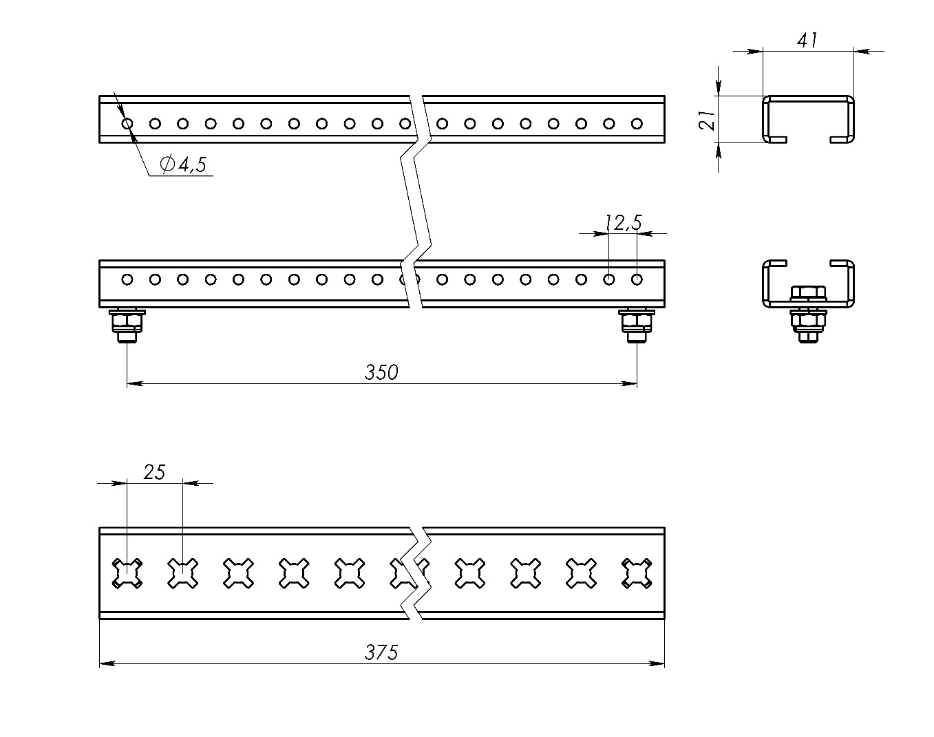 Рейки из оцинкованной стали длиной 375 мм обеспечивают установку изоляторов и других элементов держателя главной системы шин.