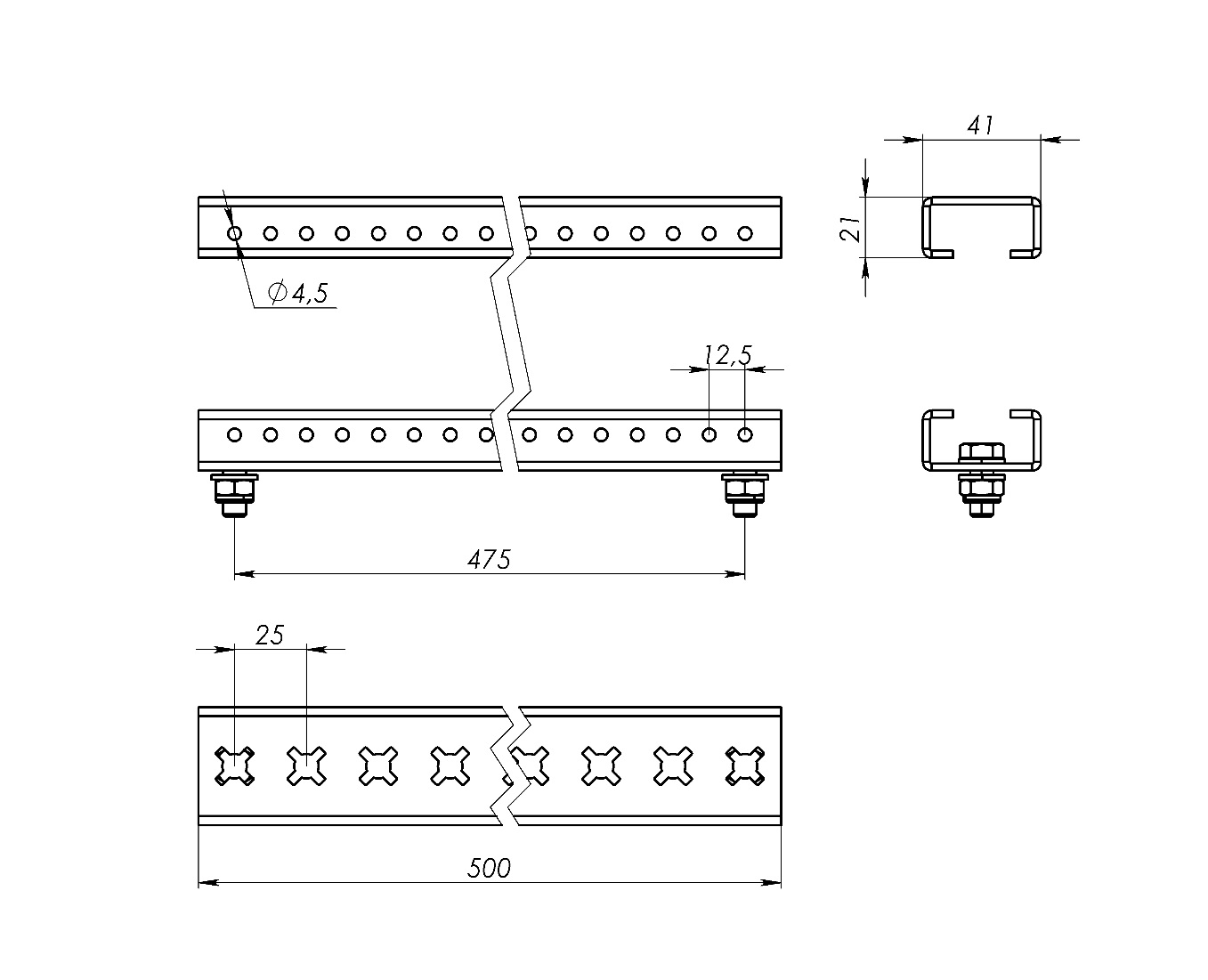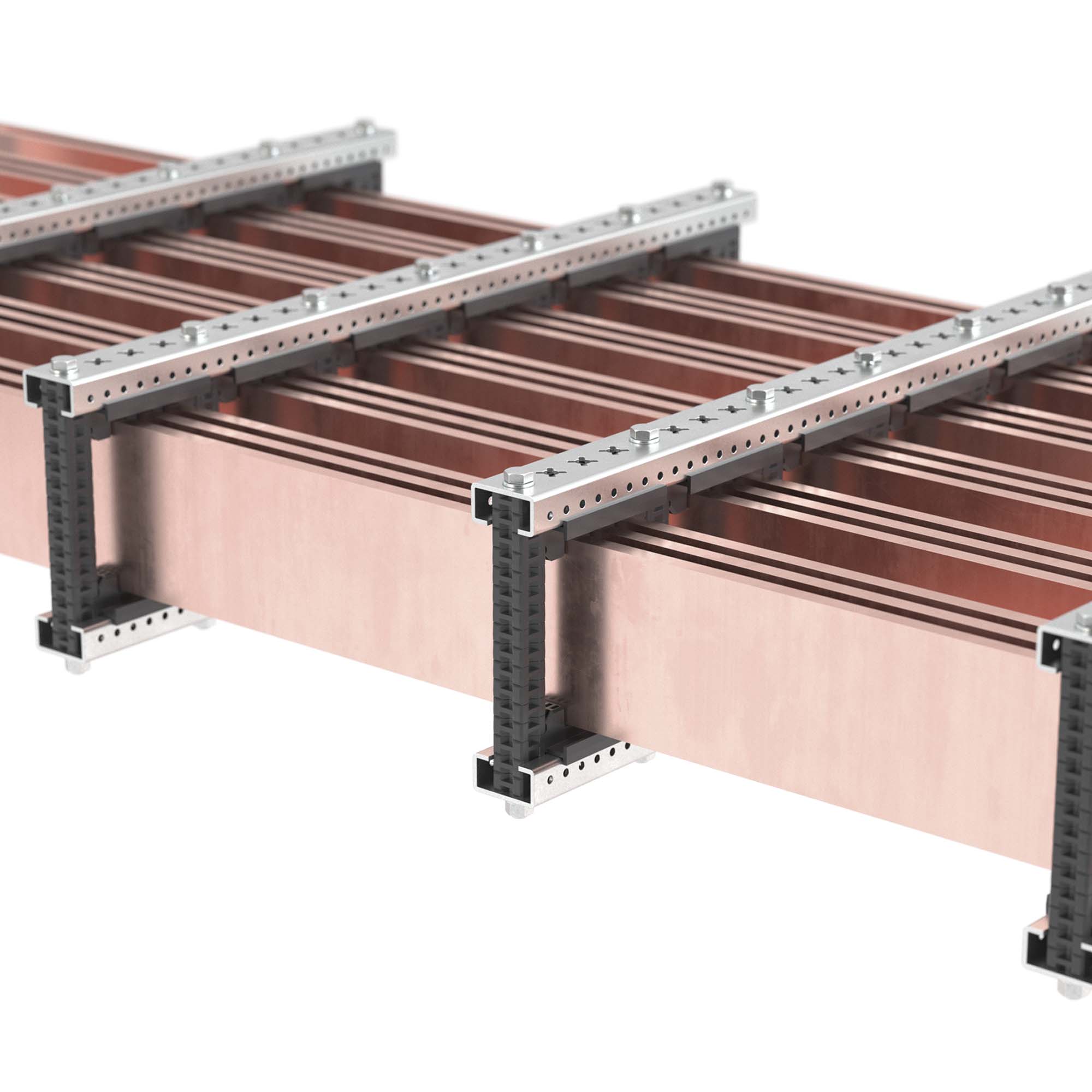 Рейки из оцинкованной стали длиной 500 мм обеспечивают установку изоляторов и других элементов держателя главной системы шин.