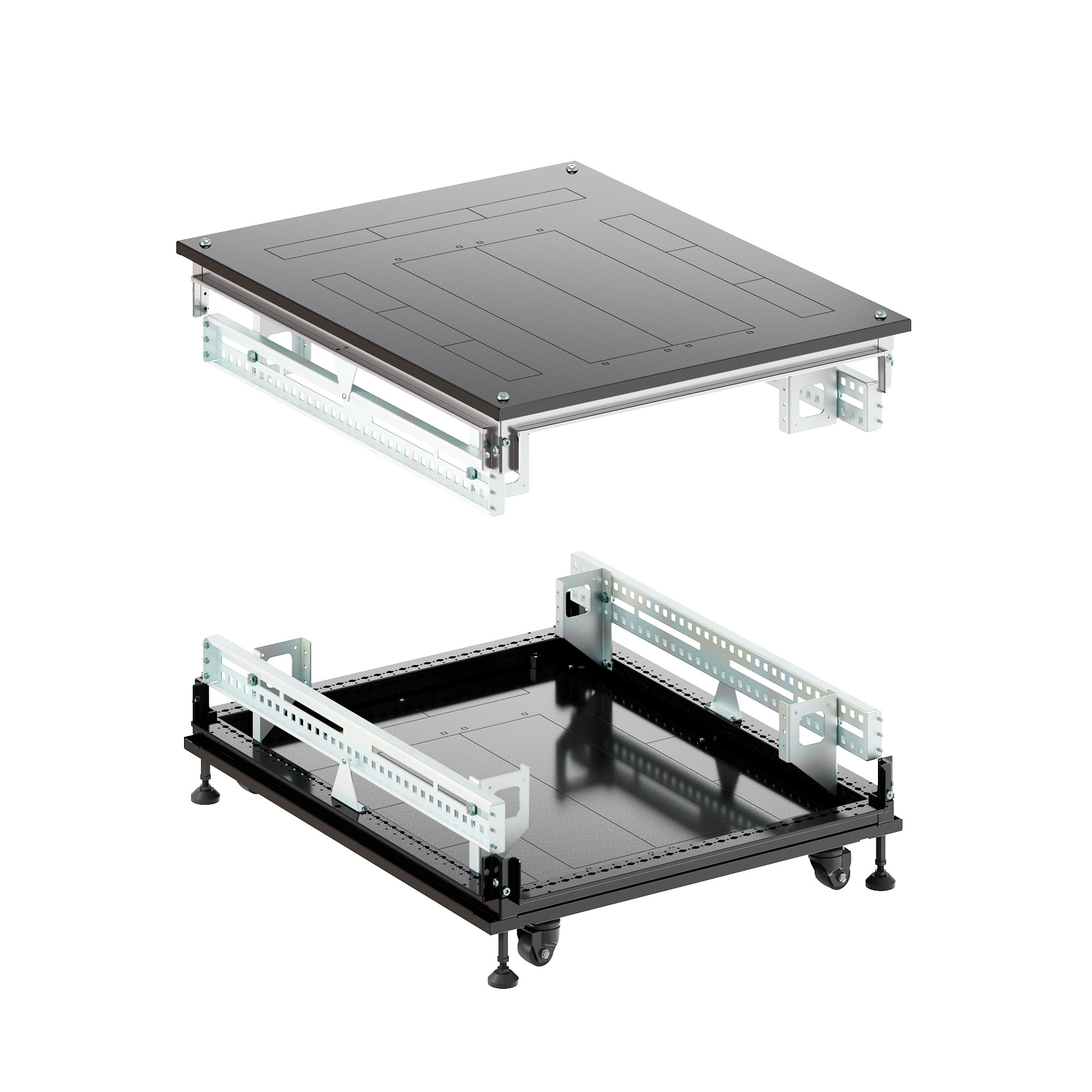 Базовый комплект из крыши и основания с преперфорацией, предустановленными опорами, роликами и линейными направляющими применяется для сборки 19" IT CQE. Отдельно приобретается вертикальный комплект необходимой высоты, двери и боковые панели. Полимерно-порошковая технология окрашивания обеспечивает прочное лакокрасочное покрытие, устойчивое к сколам и царапинам. Комплект поставки: дно, крыша, монтажные аксессуары, инструкция по QR-коду на коробке. Габариты крыши и основания: 800х1200 мм. Цвет - чёрный, RAL 9005.