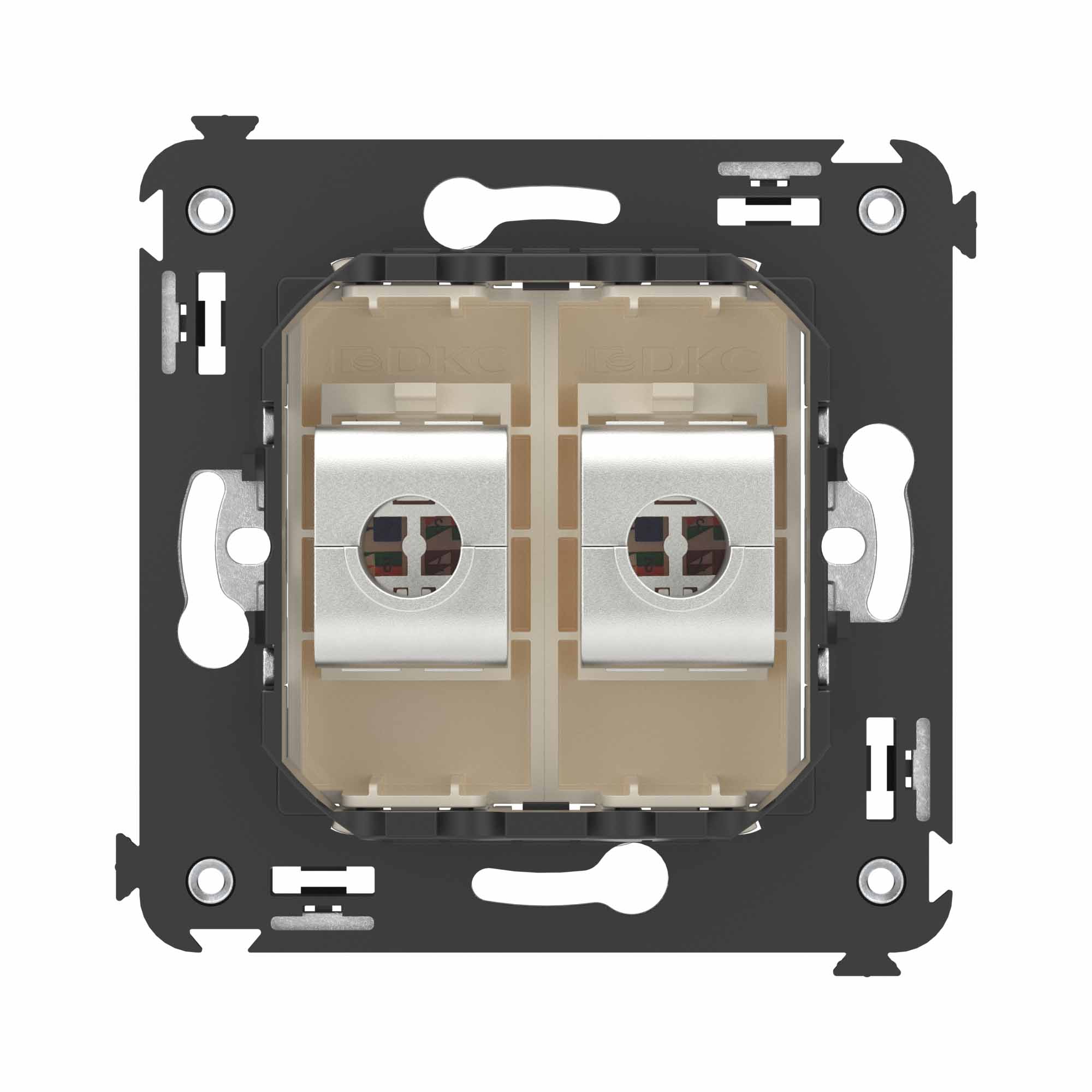 Компьютерная розетка двойная экранированная без шторки используется для подключения компьютерной техники и соединения с патч-панелью. Предназначена для скрытого монтажа в стену, поставляется в комплекте с суппортом. Розетка RJ-45 категории 6А может использоваться для организации сетей с частотой до 500 МГц и передавать данные до 10 Гбит/с. Материал розетки – металл, термопласт. Пластиковые детали изделия выполнены в цвете "Ванильная дымка".