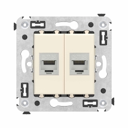 Компьютерная розетка RJ-45 без шторки в стену, кат.6А двойная экранированная, Avanti, ванильная дымка