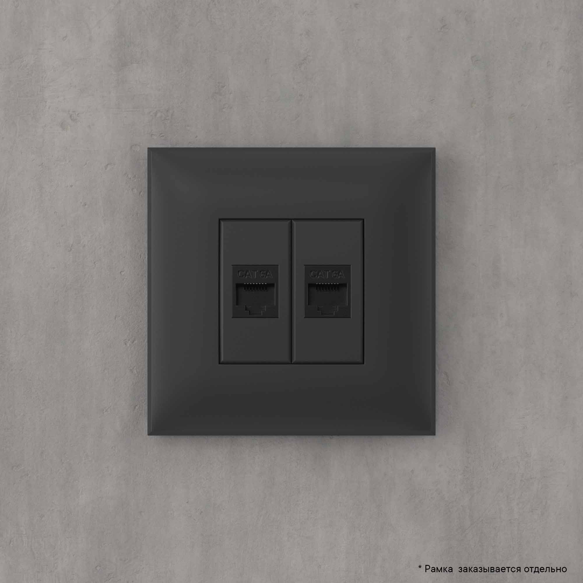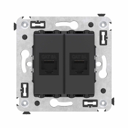 Компьютерная розетка RJ-45 без шторки в стену, кат.6А двойная, Avanti, черный матовый