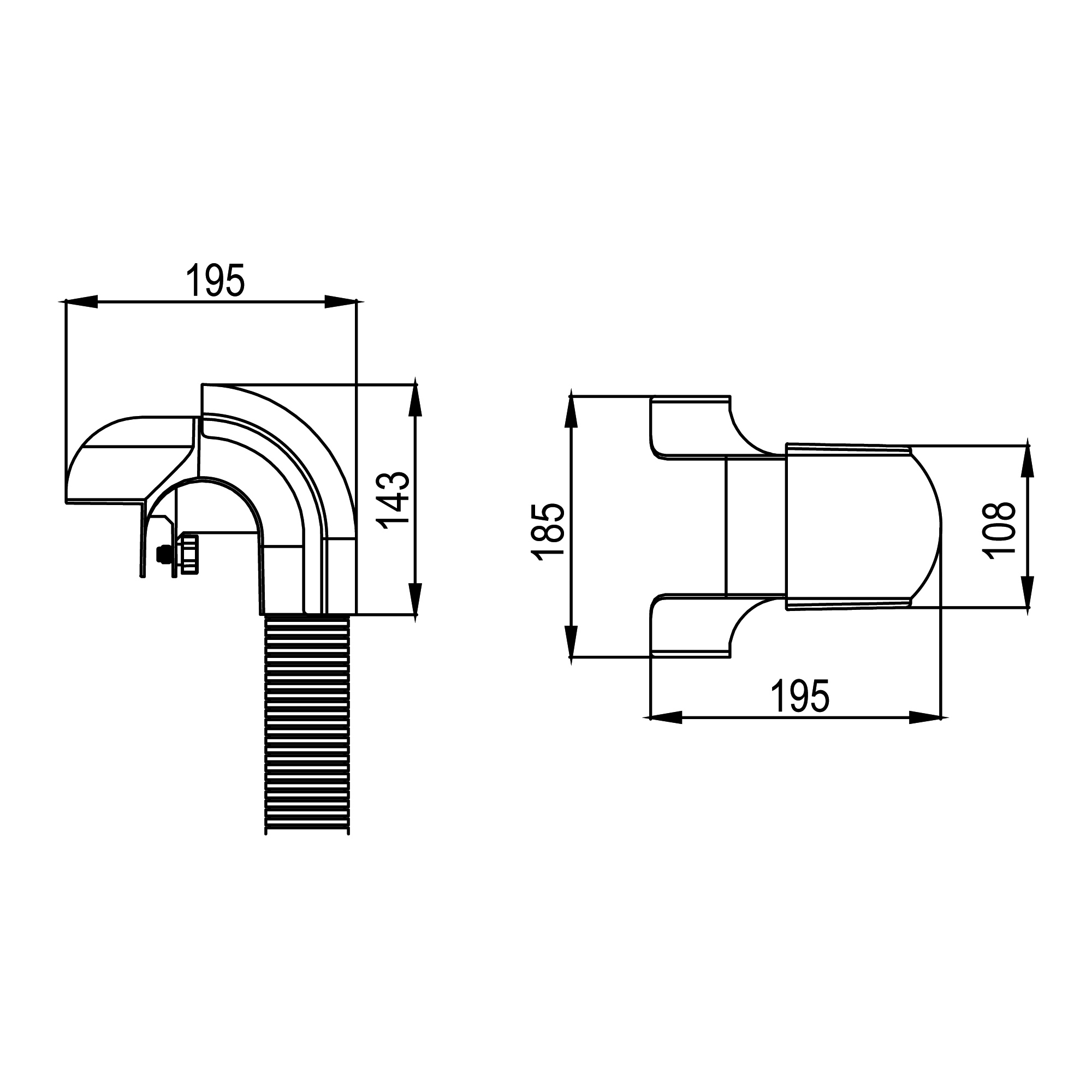 Ответвитель-крышка Т-образный вертикальный вниз 143х90 мм с трубой